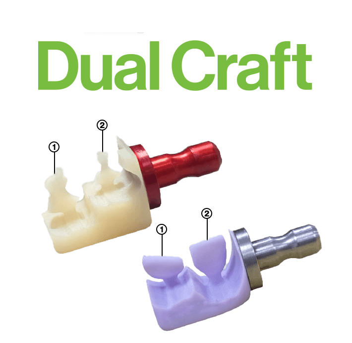 - DualCraft ti consente di fresare due restauri da un unico blocchetto, dimezzando materiali, tempi e costi con il fresatore chairside Lilivis MILL.