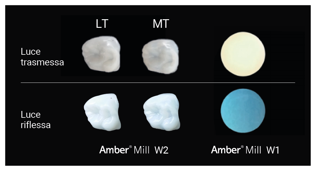 - Amber® Mill è progettato per replicare fedelmente la caratteristica opalescenza dei denti naturali.