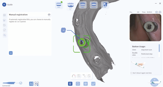 Grazie alla connessione WiFi 6 senza fili e alla tecnologia di trasmissione senza interruzioni, il Leap 500 garantisce una scansione fluida e senza interruzioni, anche negli ambienti più soggetti a interferenze. Con una profondità di campo straordinaria di 25mm e la capacità di completare la scansione di un’arcata completa in soli 10 secondi, riduce i tempi di lavoro e migliora il comfort del paziente.